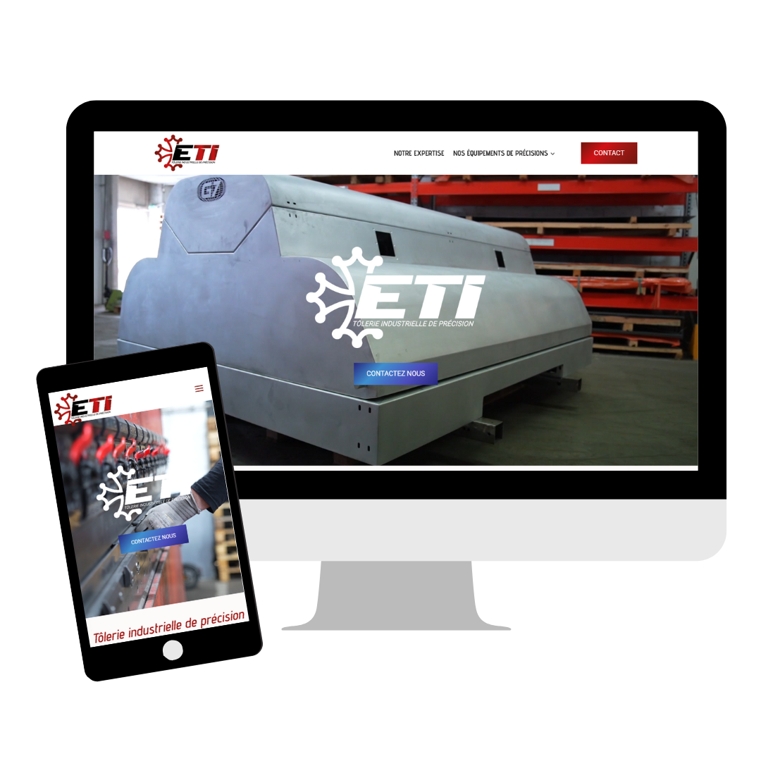 Refonte du site internet — réalisation d’un site vitrine moderne, sobre et professionnel, mettant en lumière les différentes expertises d’ETI (tôlerie, découpe laser, usinage aluminium, poinçonnage, etc.). Chaque savoir-faire est illustré par des vidéos techniques, ce qui rend la présentation claire et immersive pour les prospects.